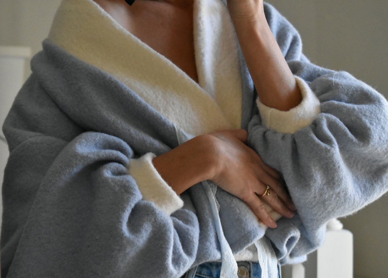 - Shoulder width: 73cm (jacket with dropped shoulders).