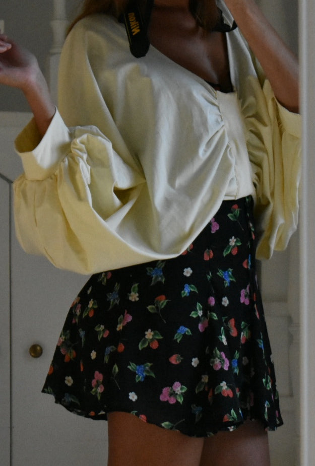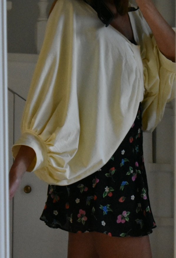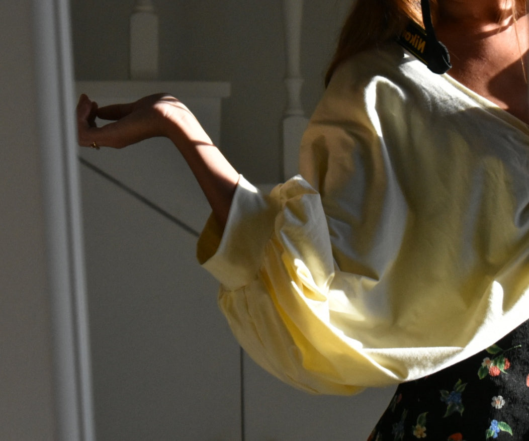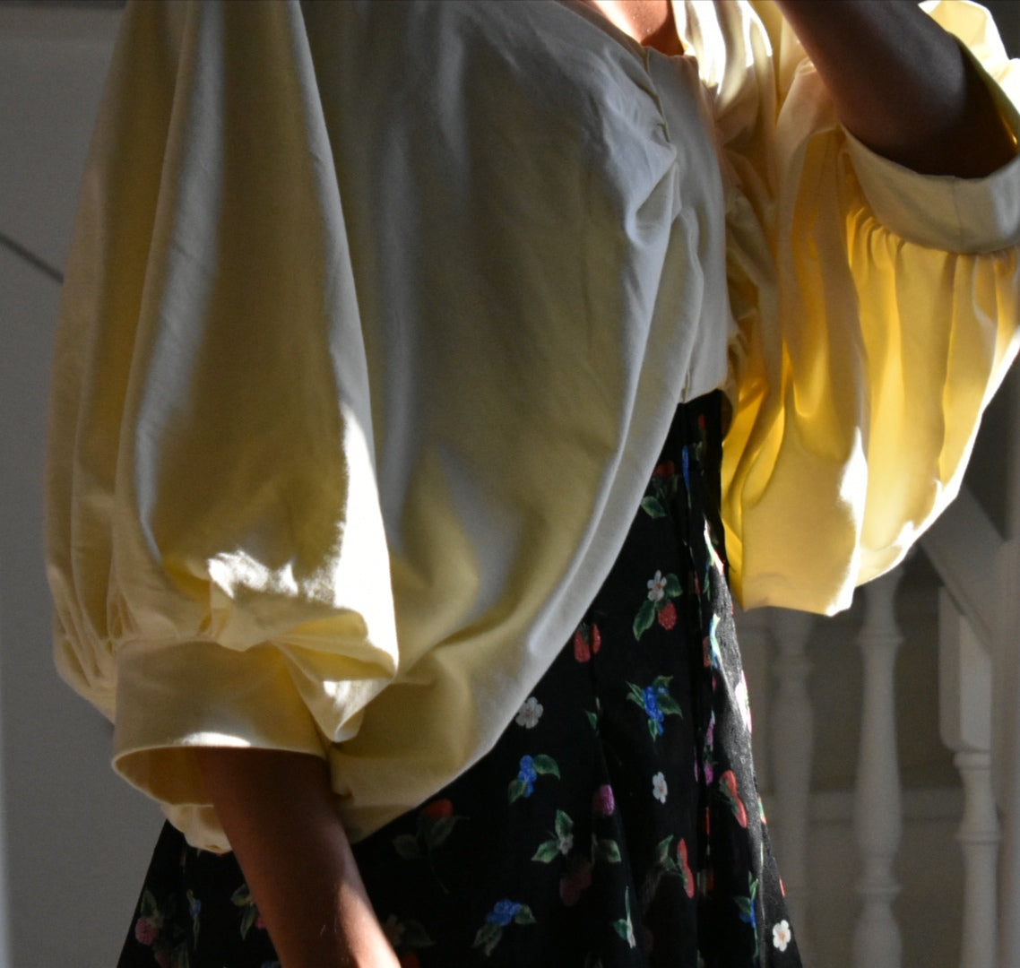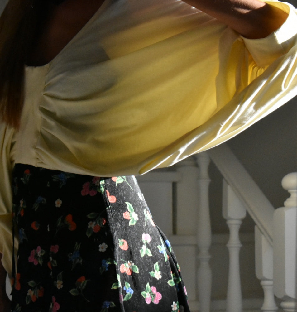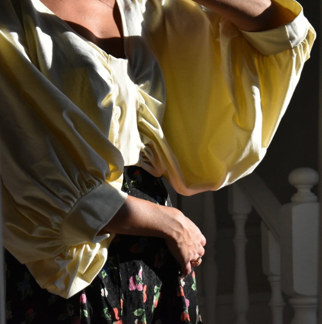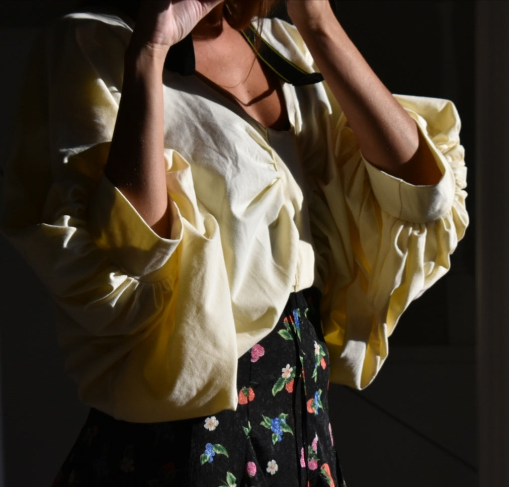 Handmade blouse made from reused fabric.