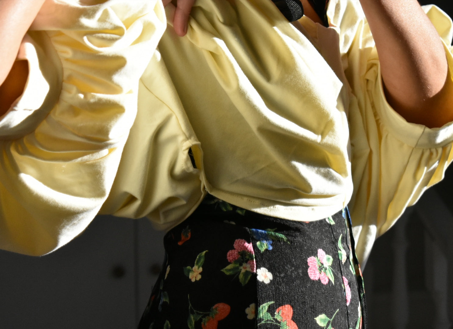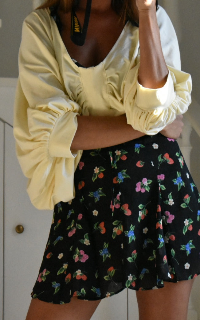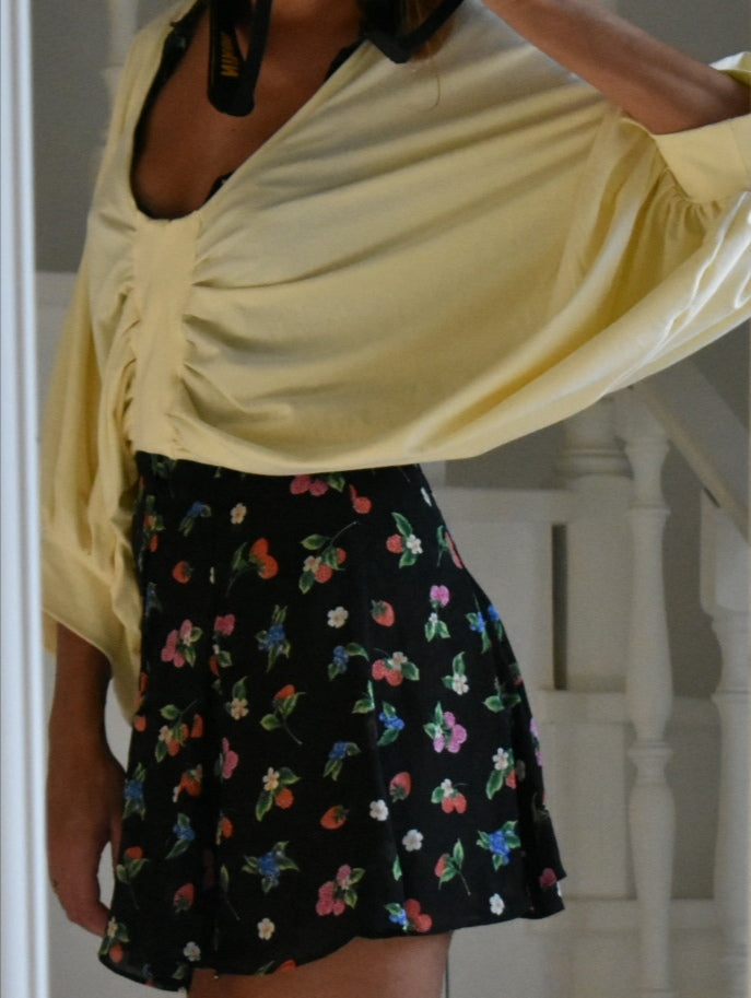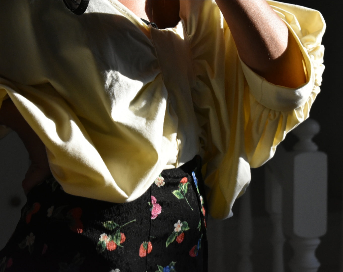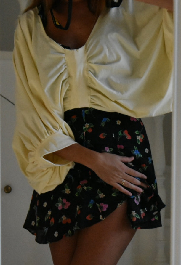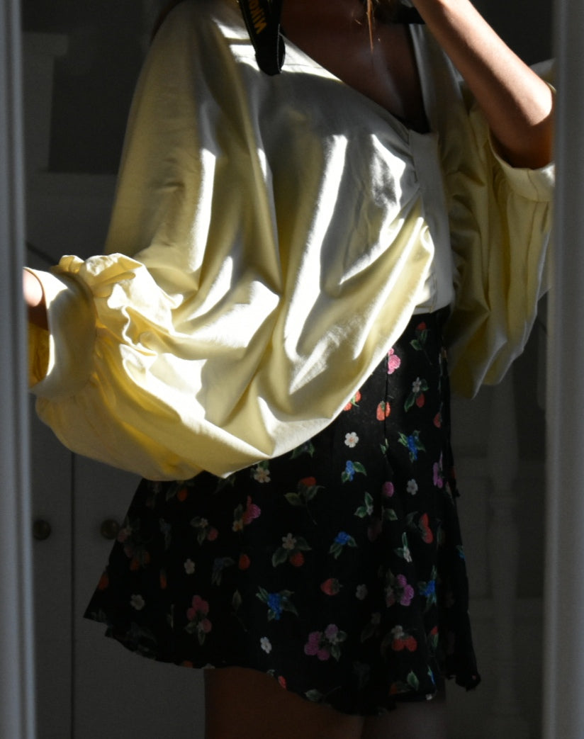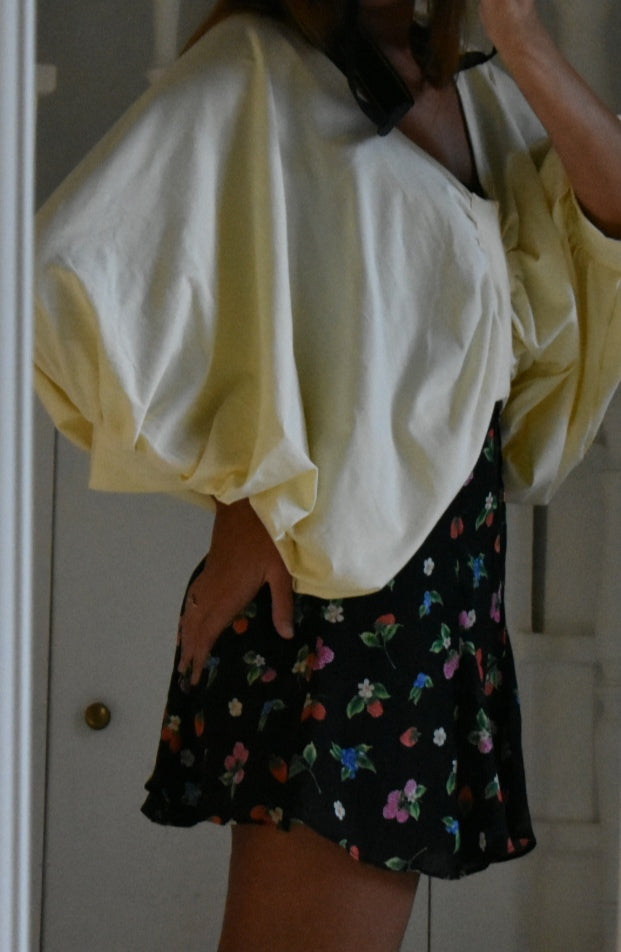 Handmade blouse made from reused fabric.