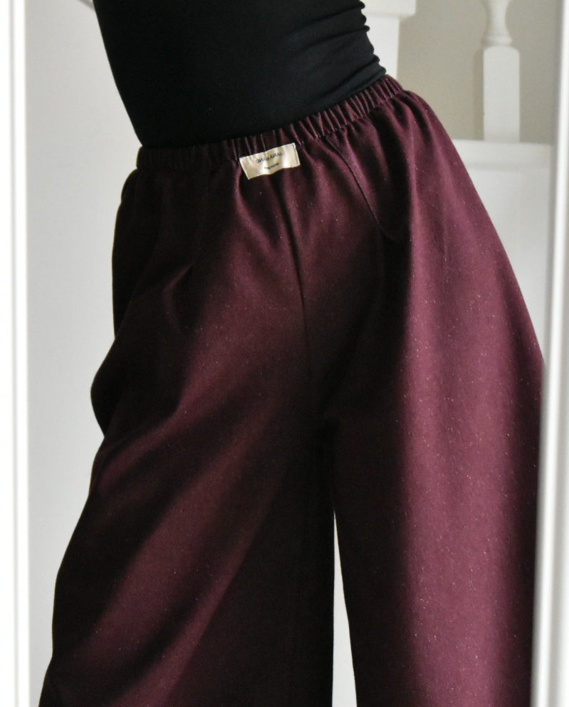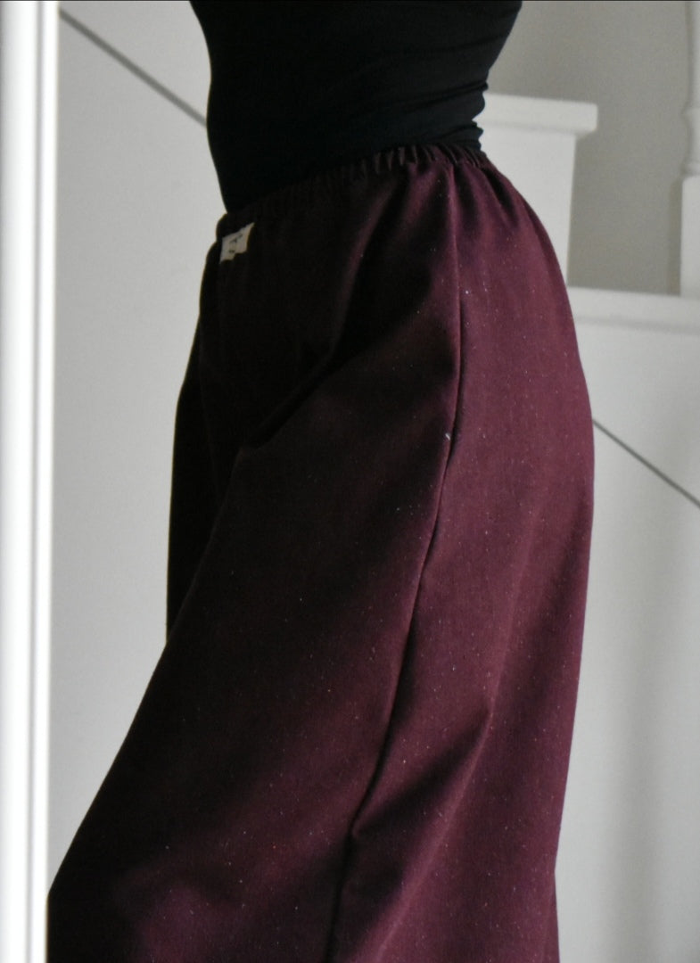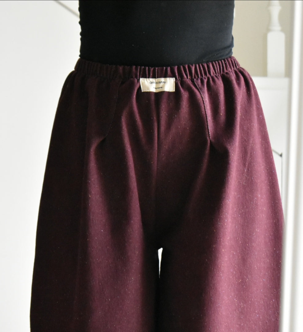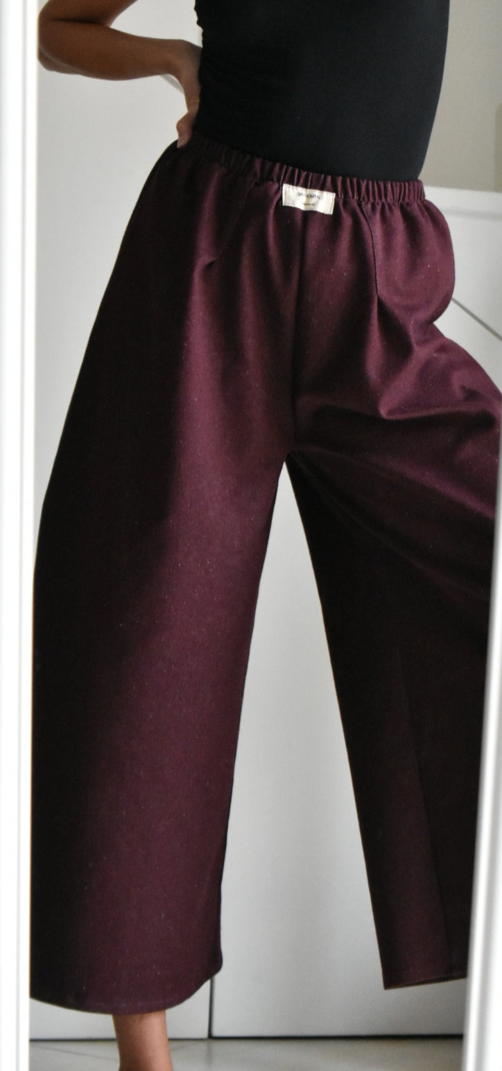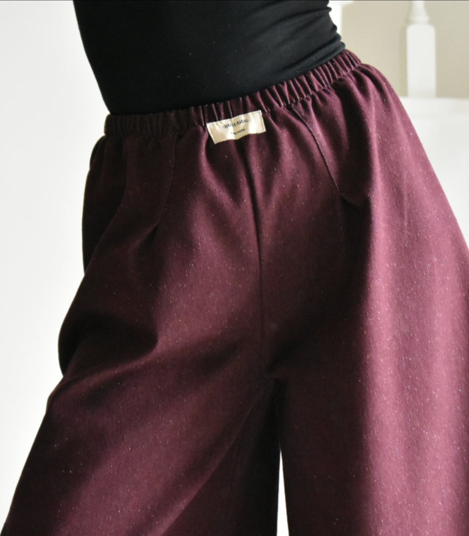 Pantalón de tiro alto hecho a mano. Color bordeaux.
