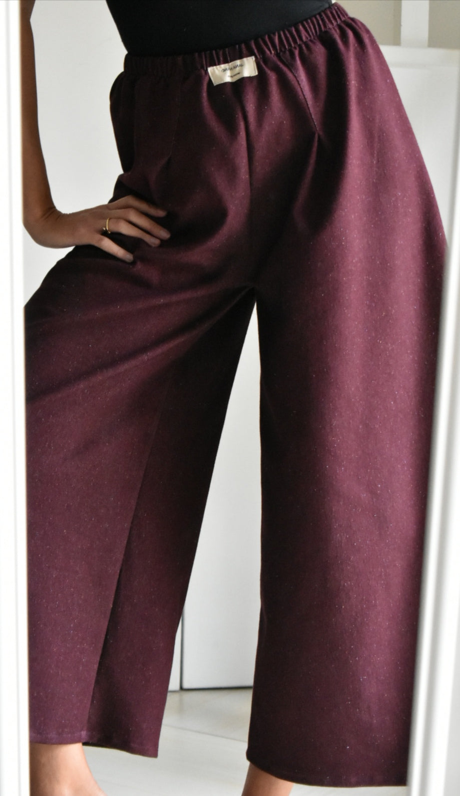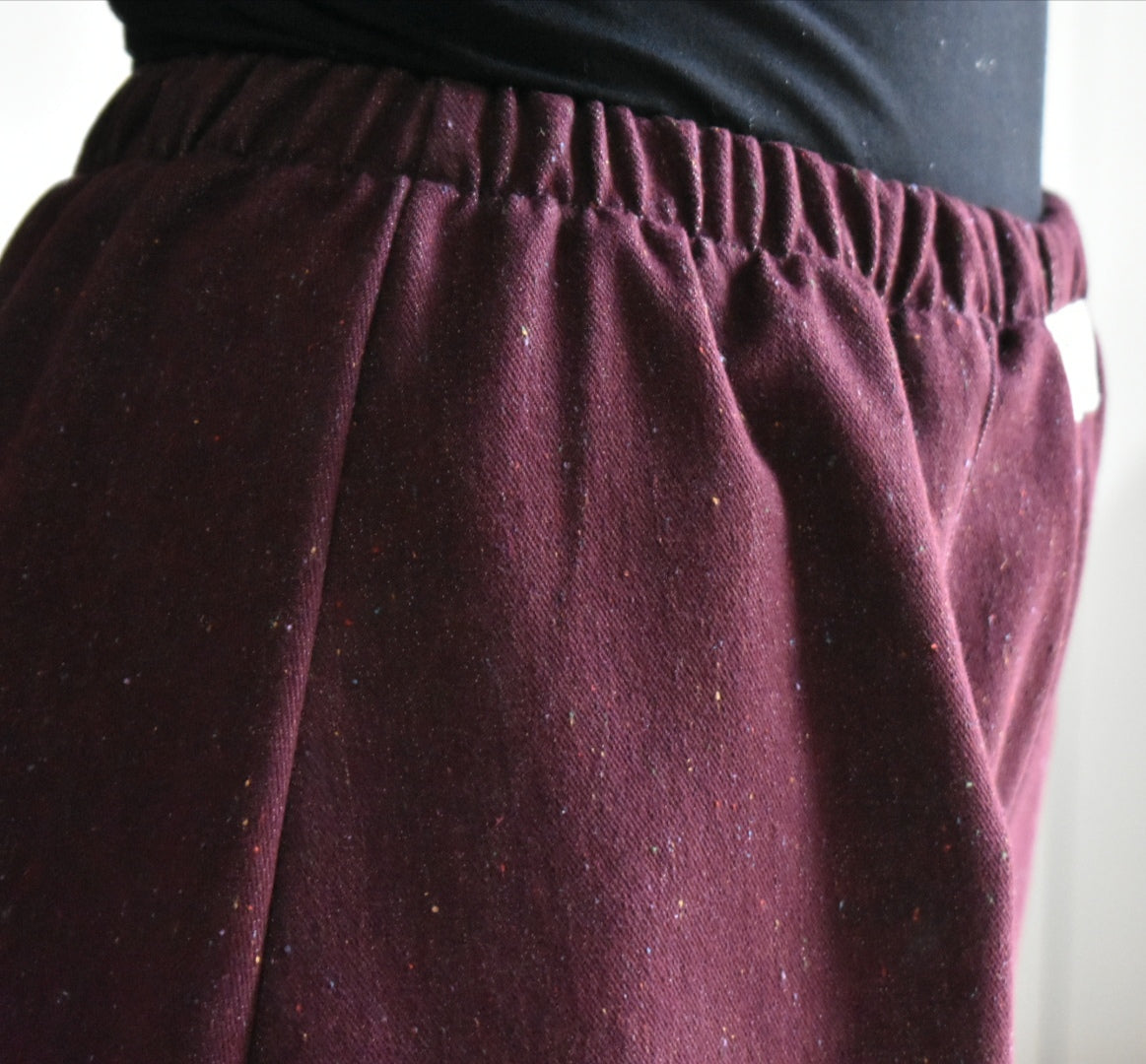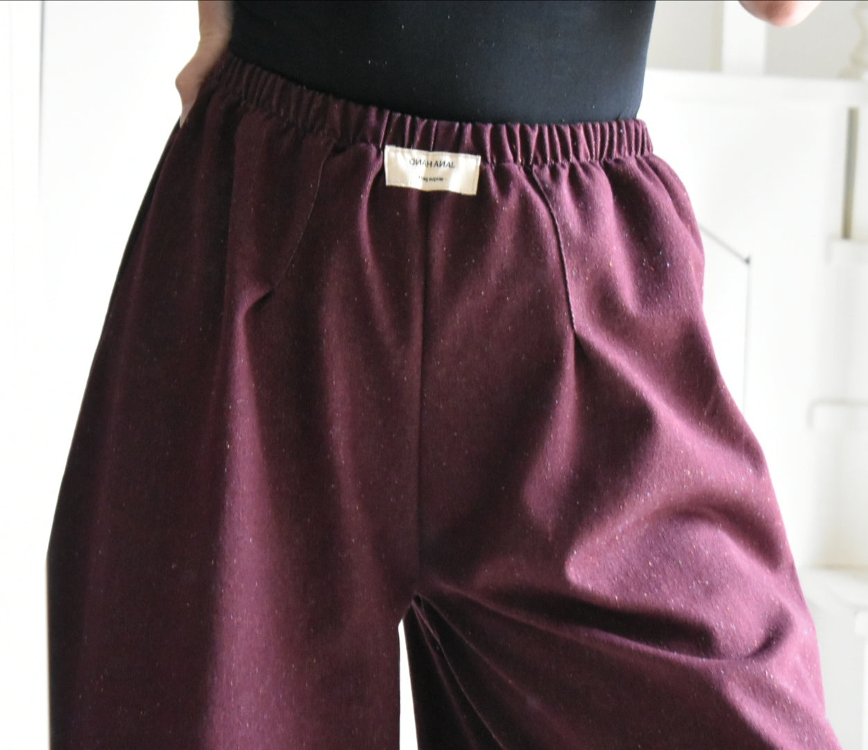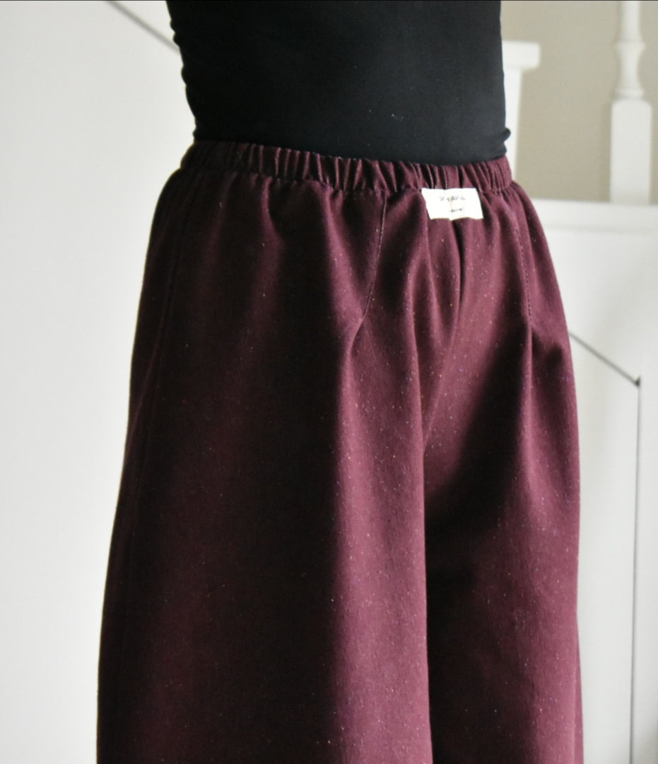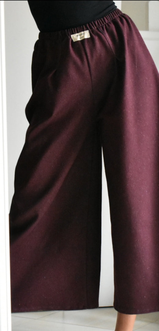 Pantalón de tiro alto hecho a mano. Color bordeaux.
