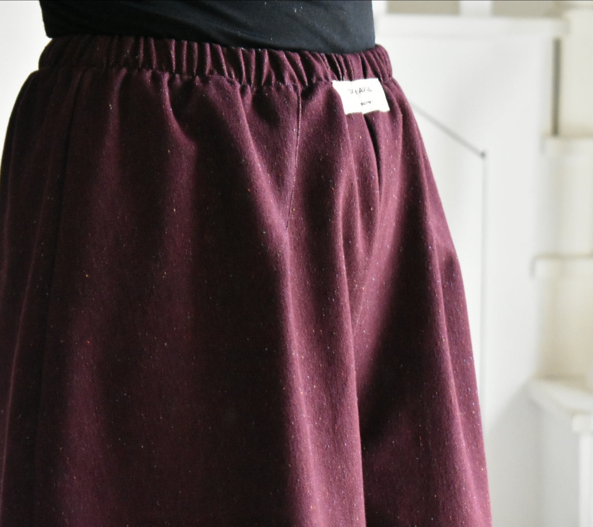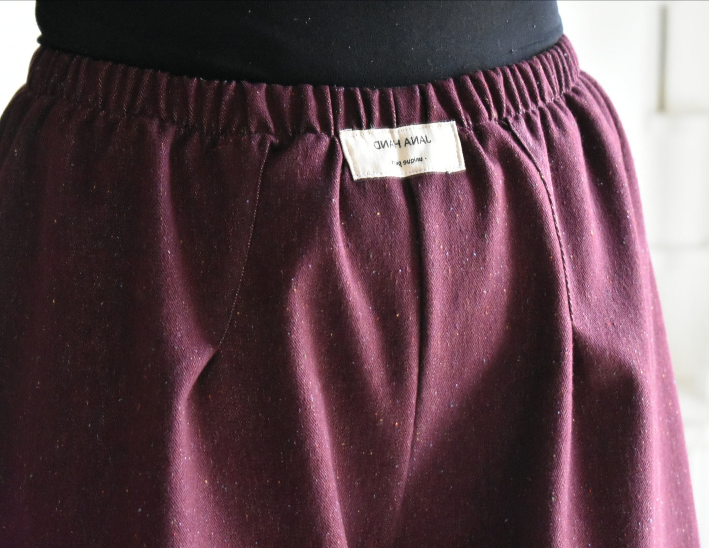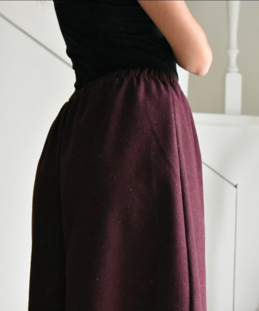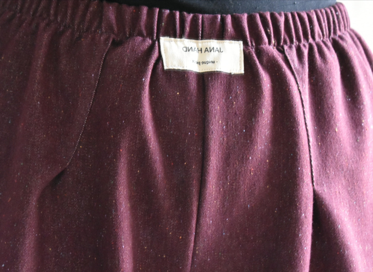 Pantalón de tiro alto hecho a mano. Color bordeaux.