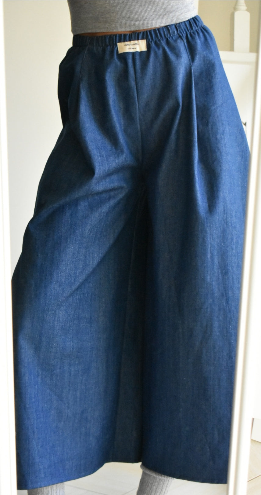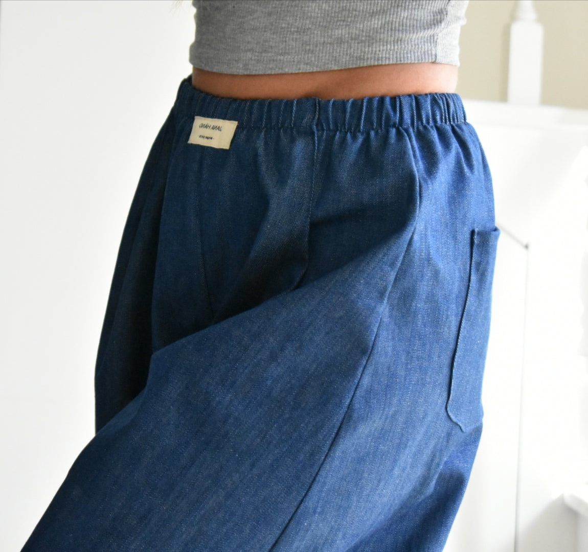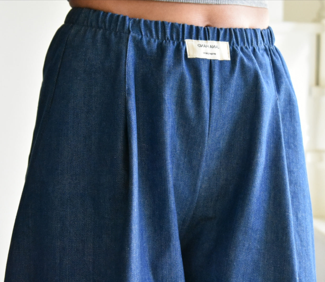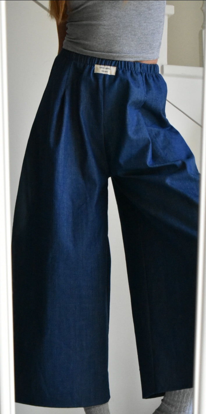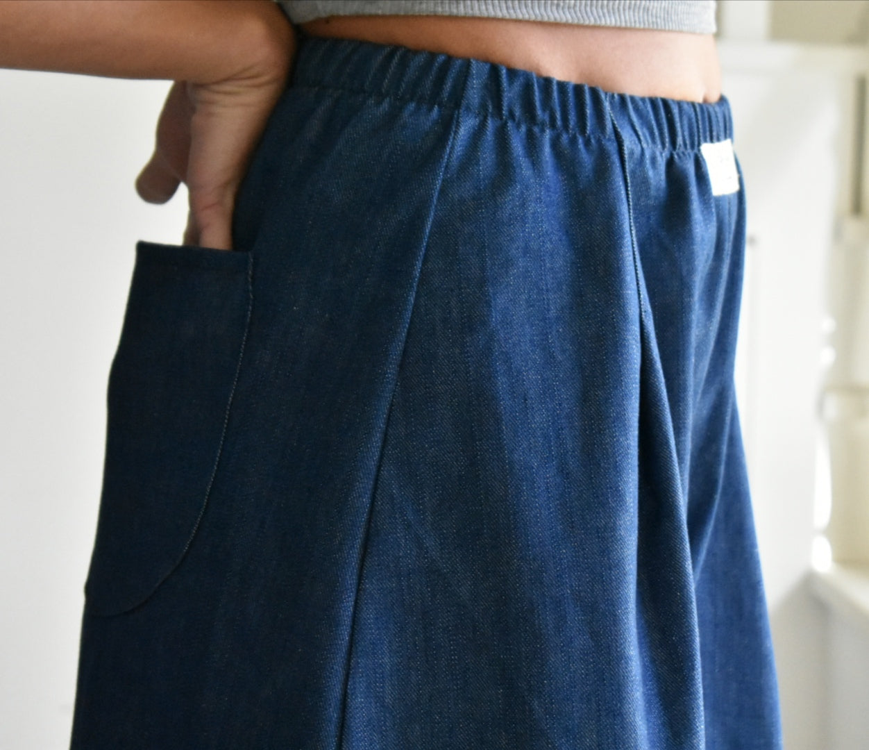 Pantalón de tiro alto con bolsillos traseros, hecho a mano.