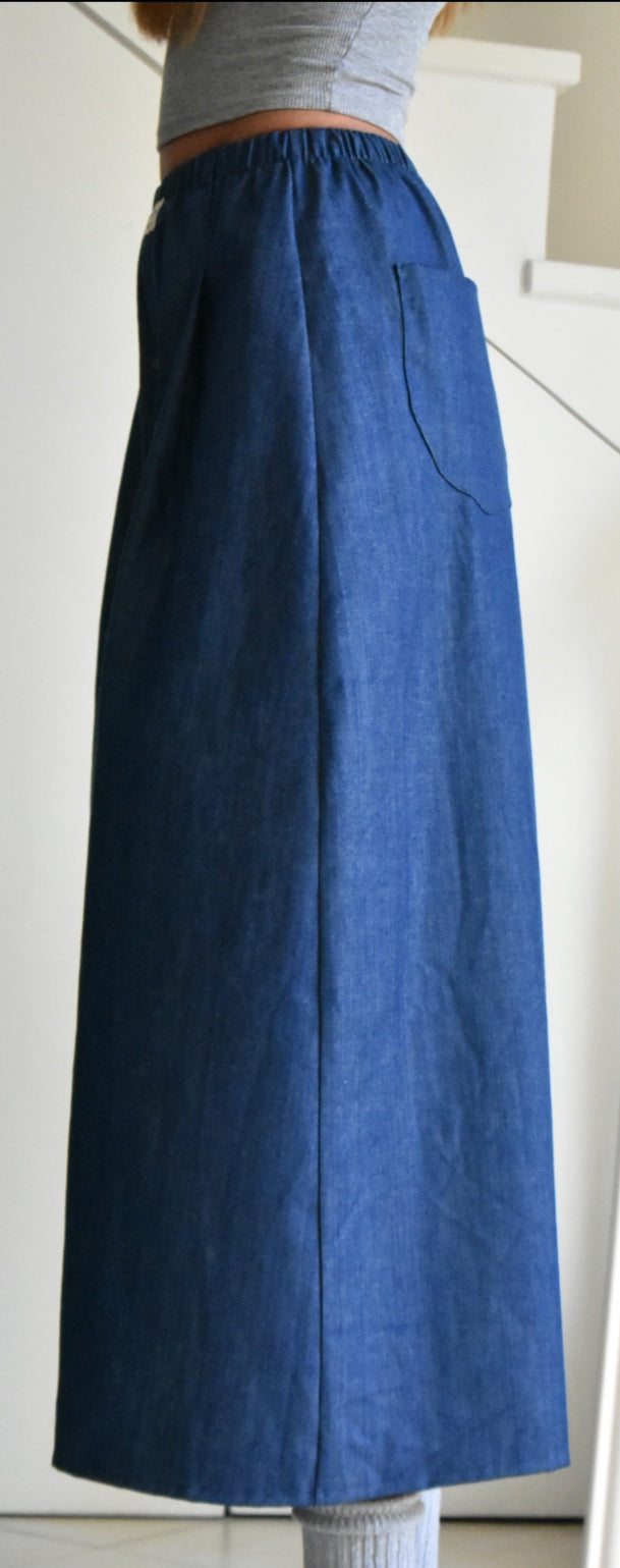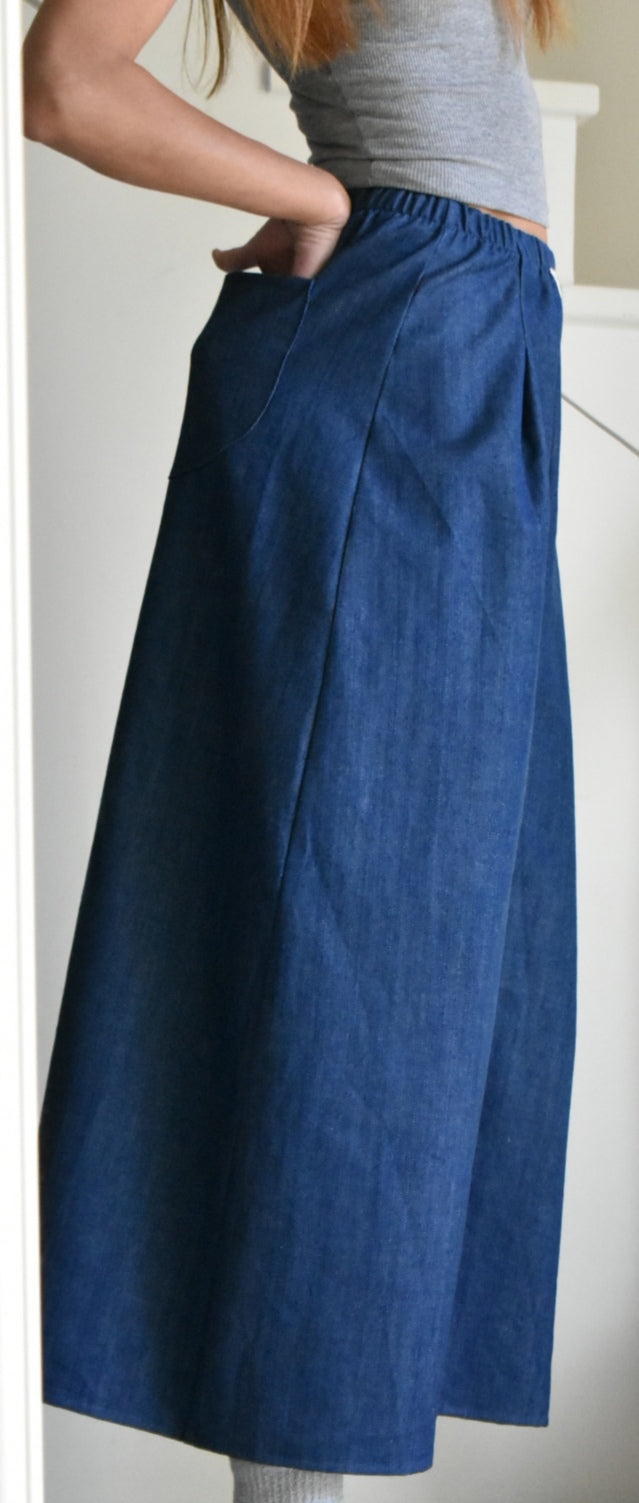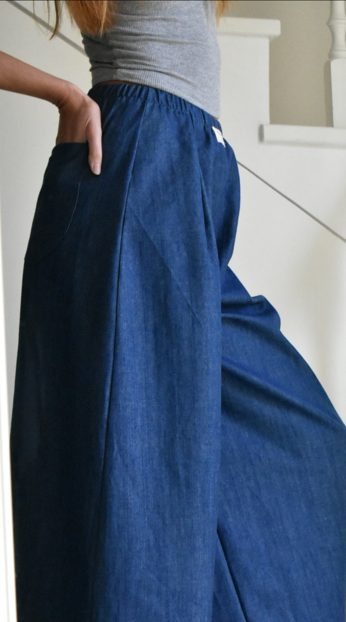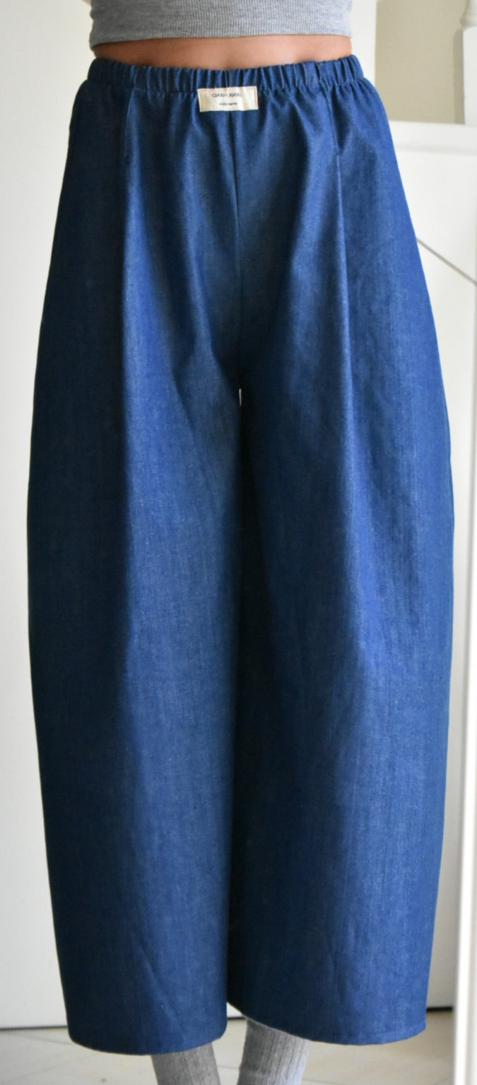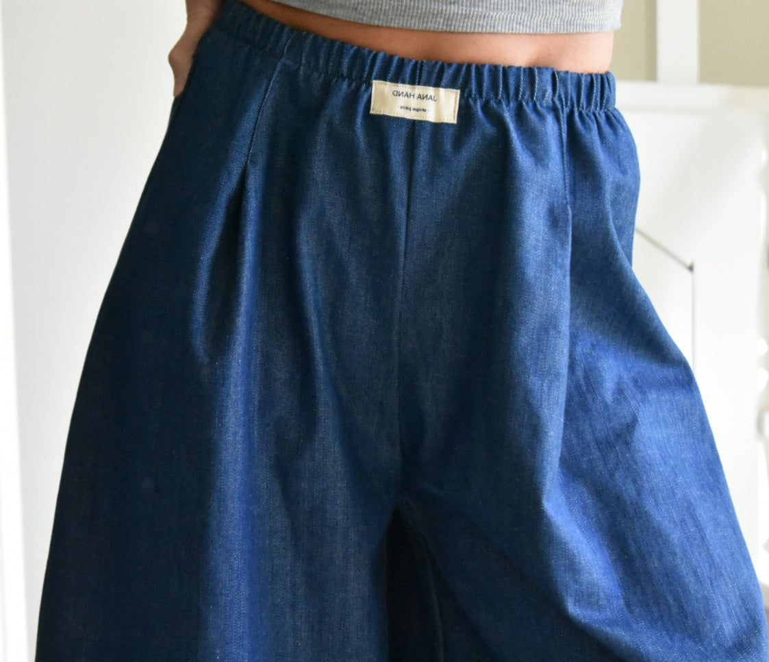 Pantalón de tiro alto con bolsillos traseros, hecho a mano.