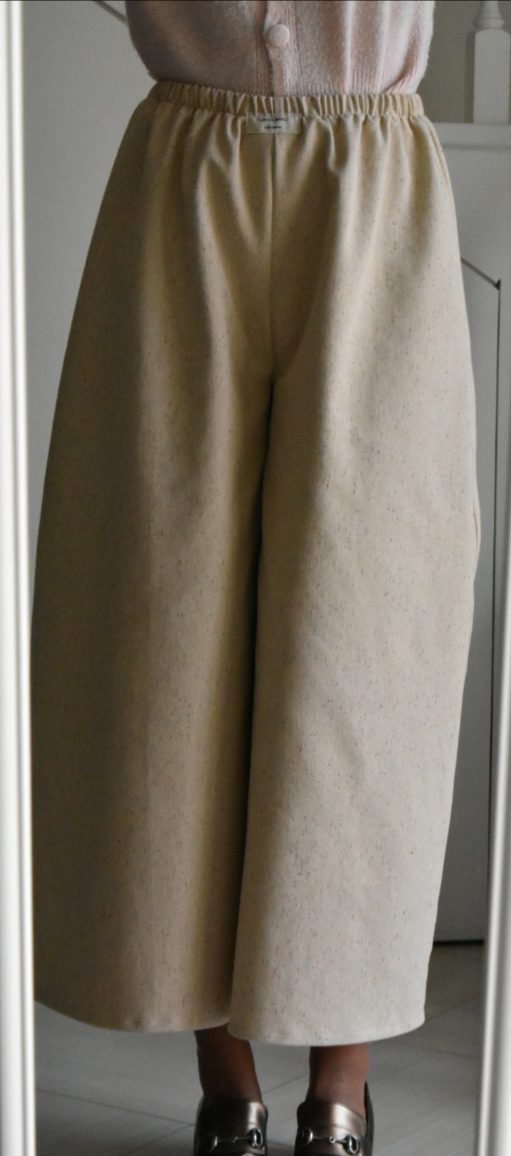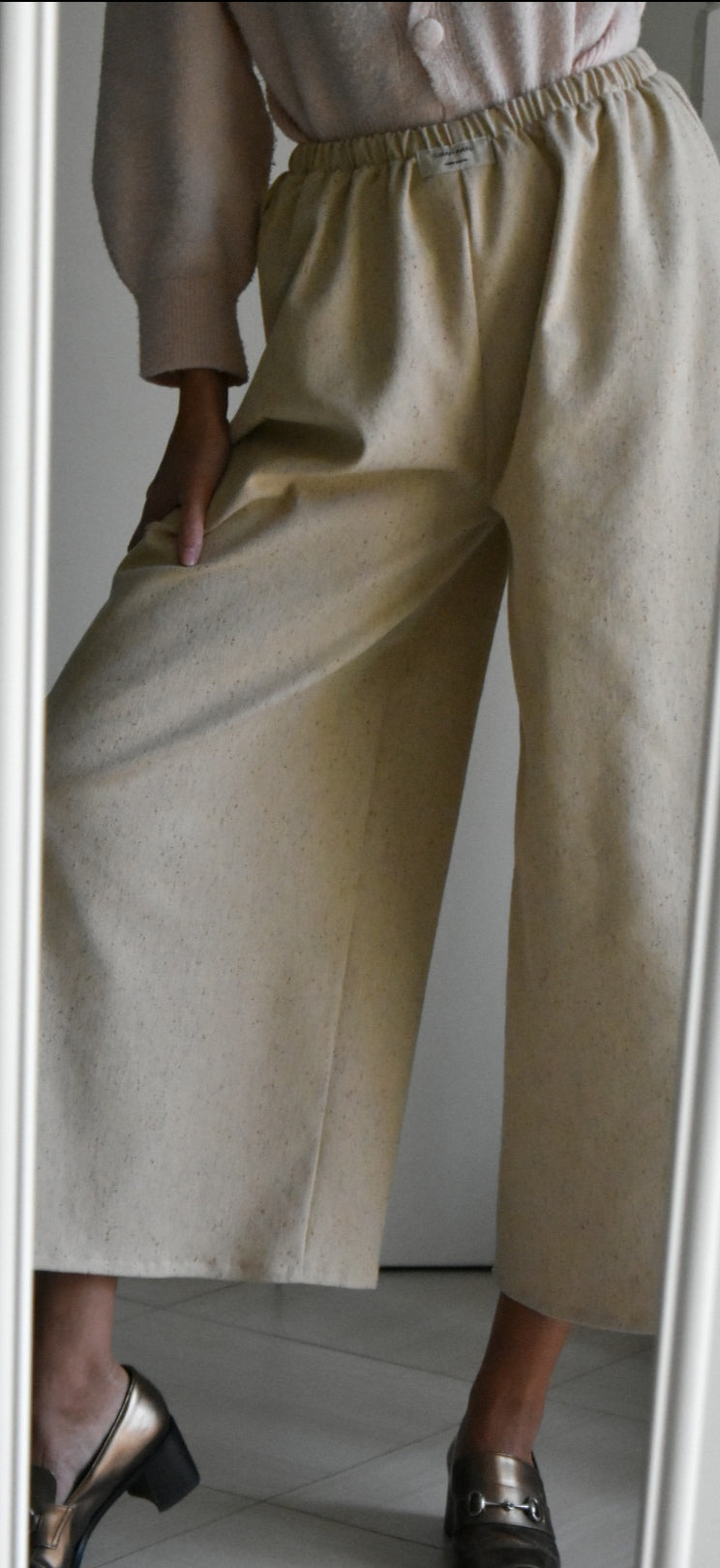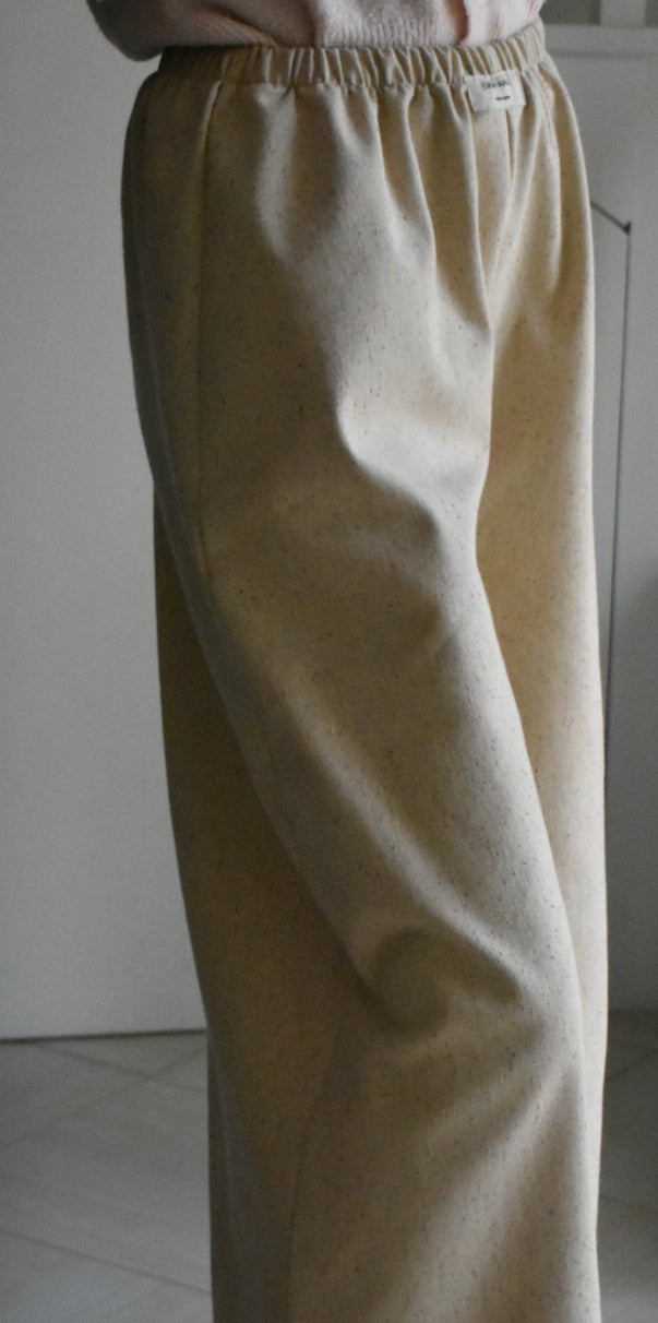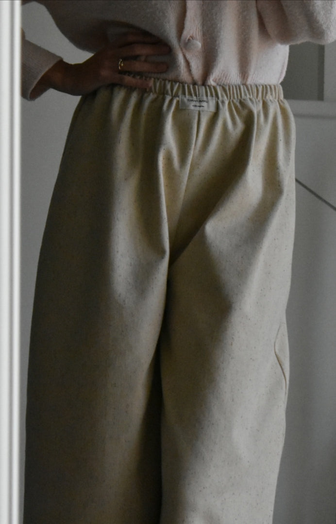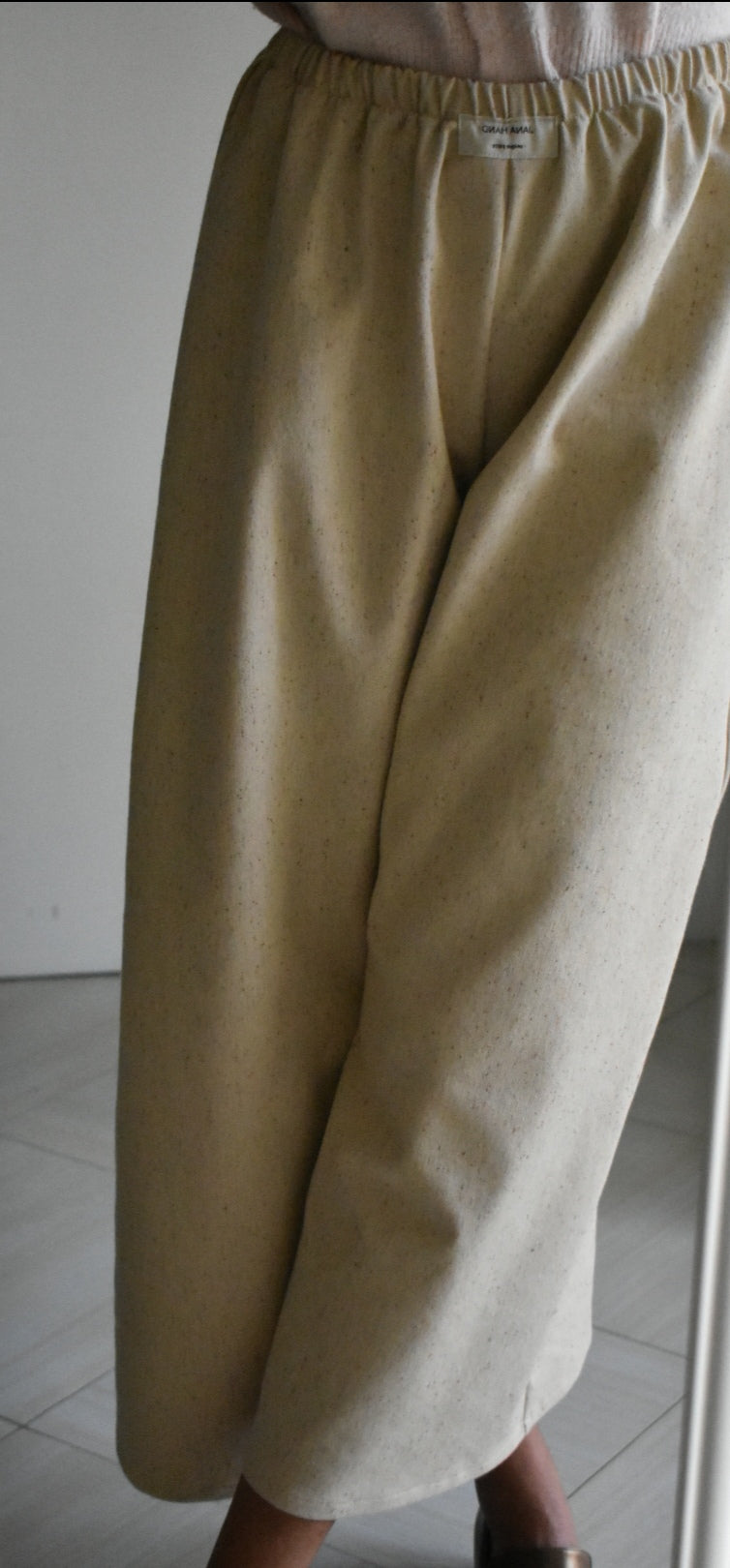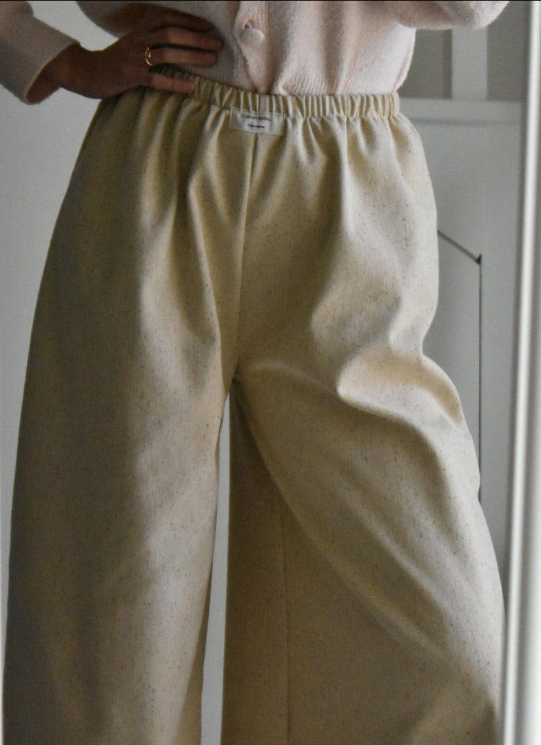 Pantalón de cintura alta hecho a mano. Color crema.