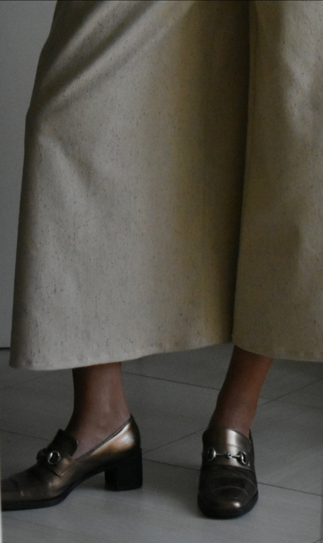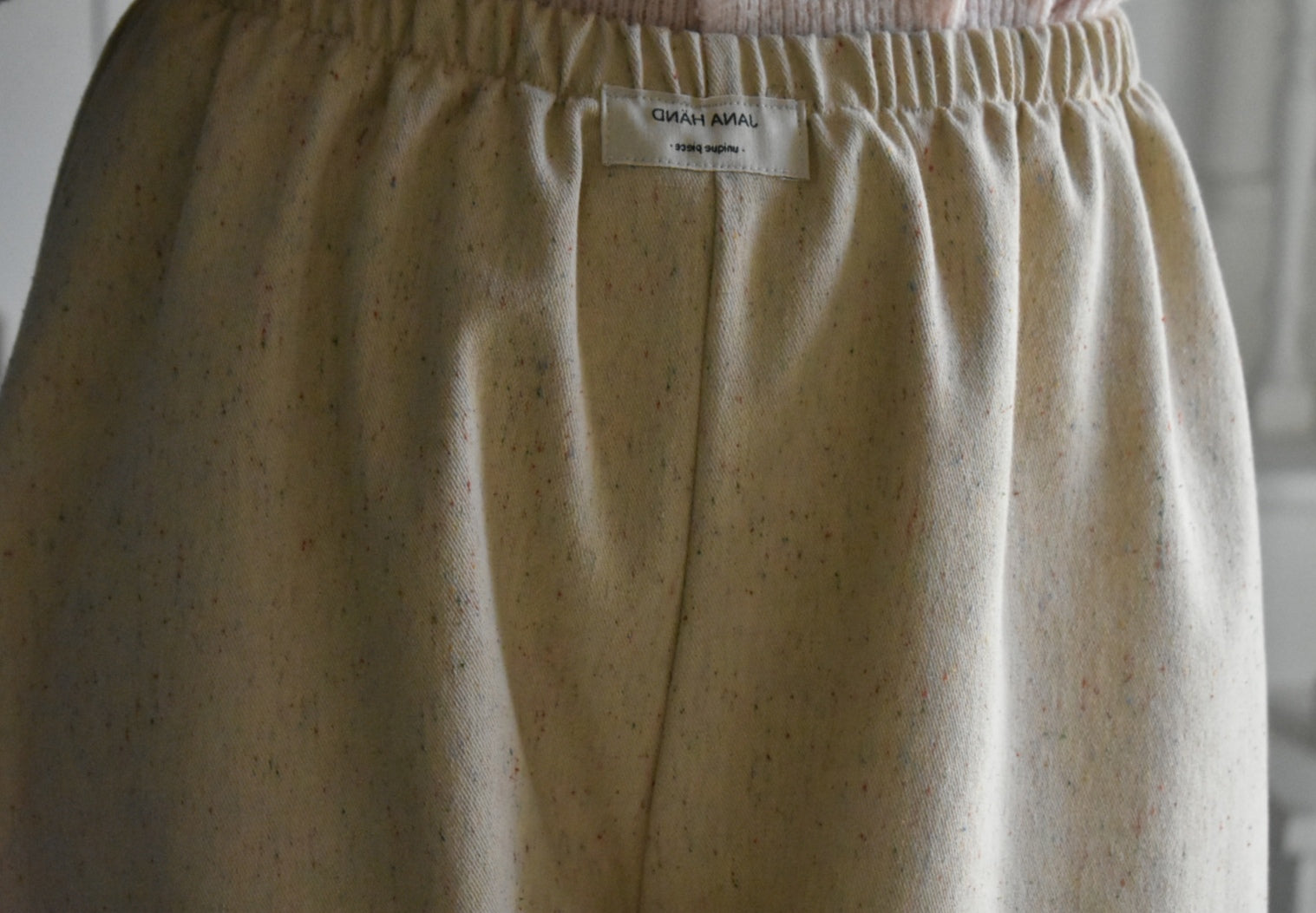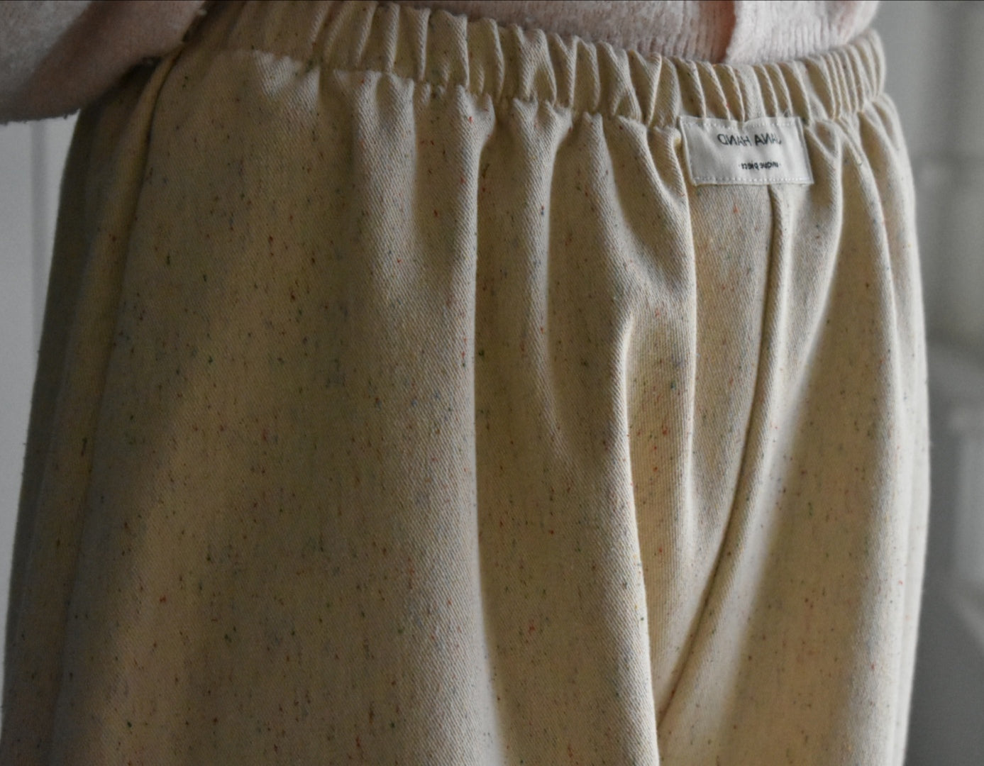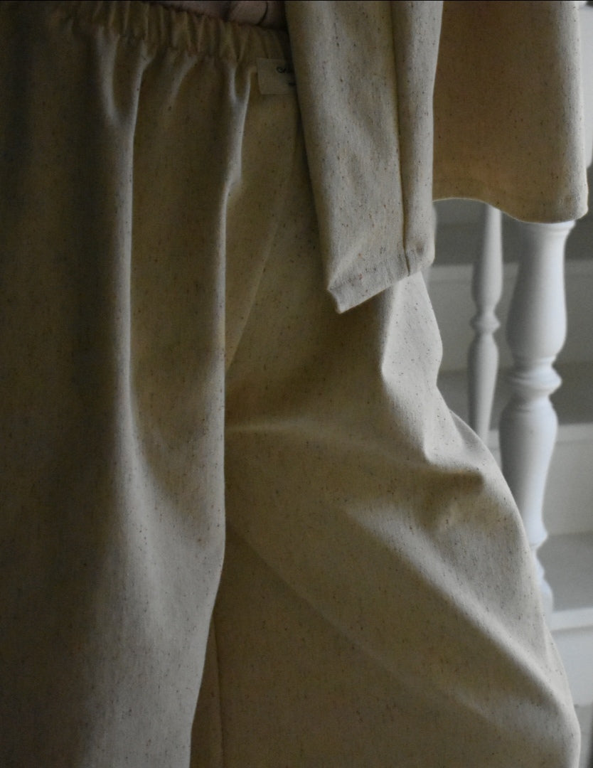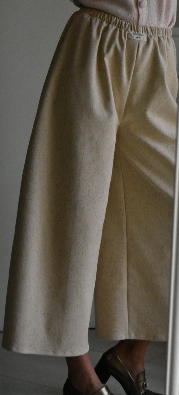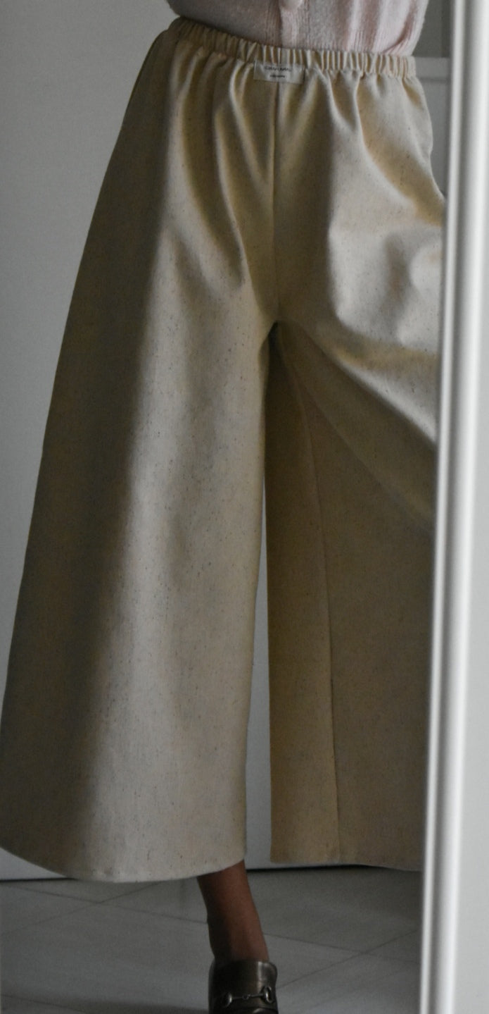 Pantalón de cintura alta hecho a mano. Color crema.