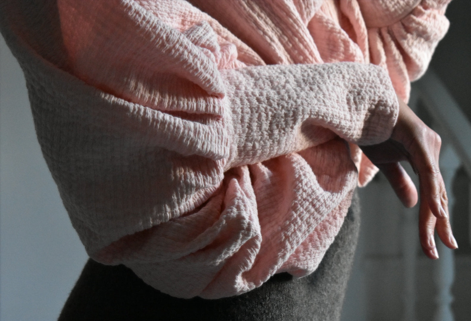 - La longitud de la manga es de 69 cm, medida desde la base del cuello/hombro hasta el puño.