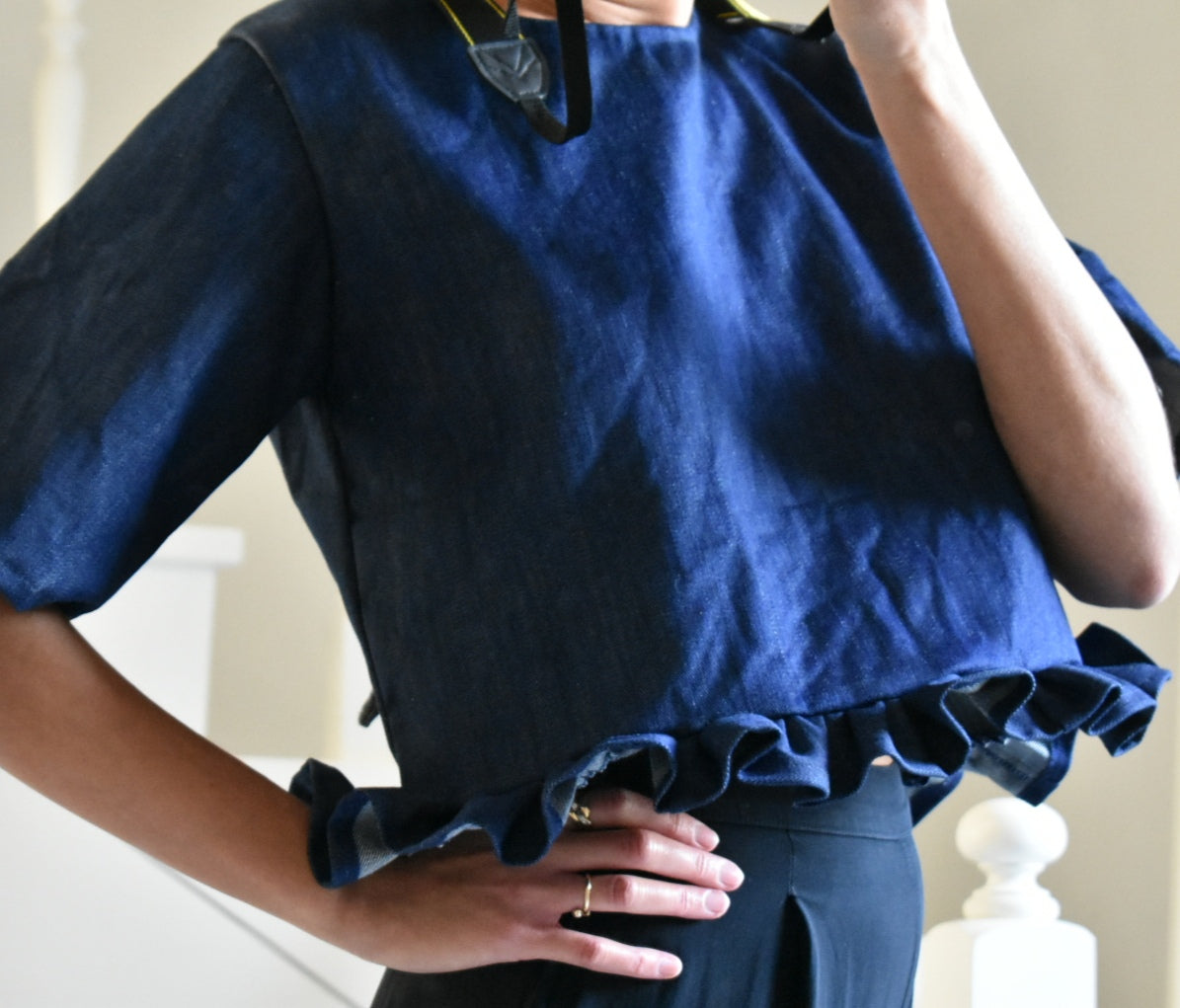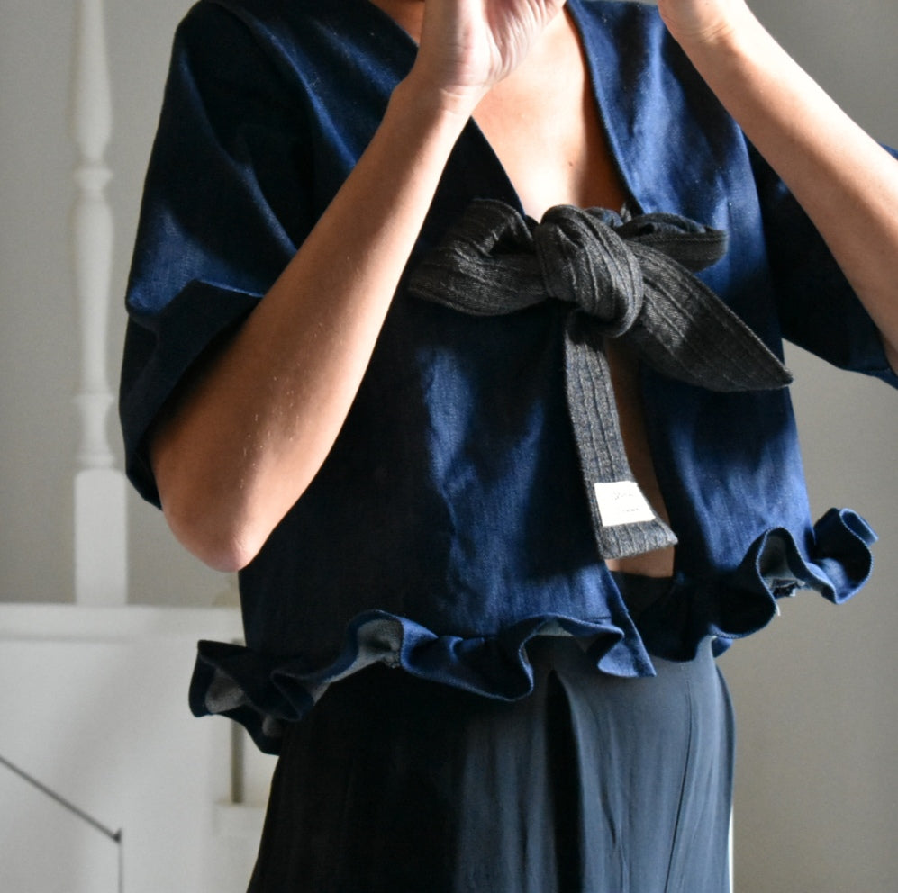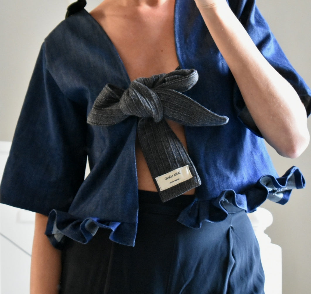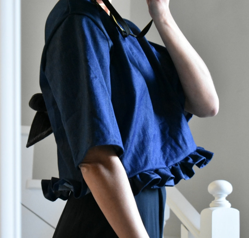 Blusa hecha a mano. Se puede usar con la abertura en la parte delantera o trasera.