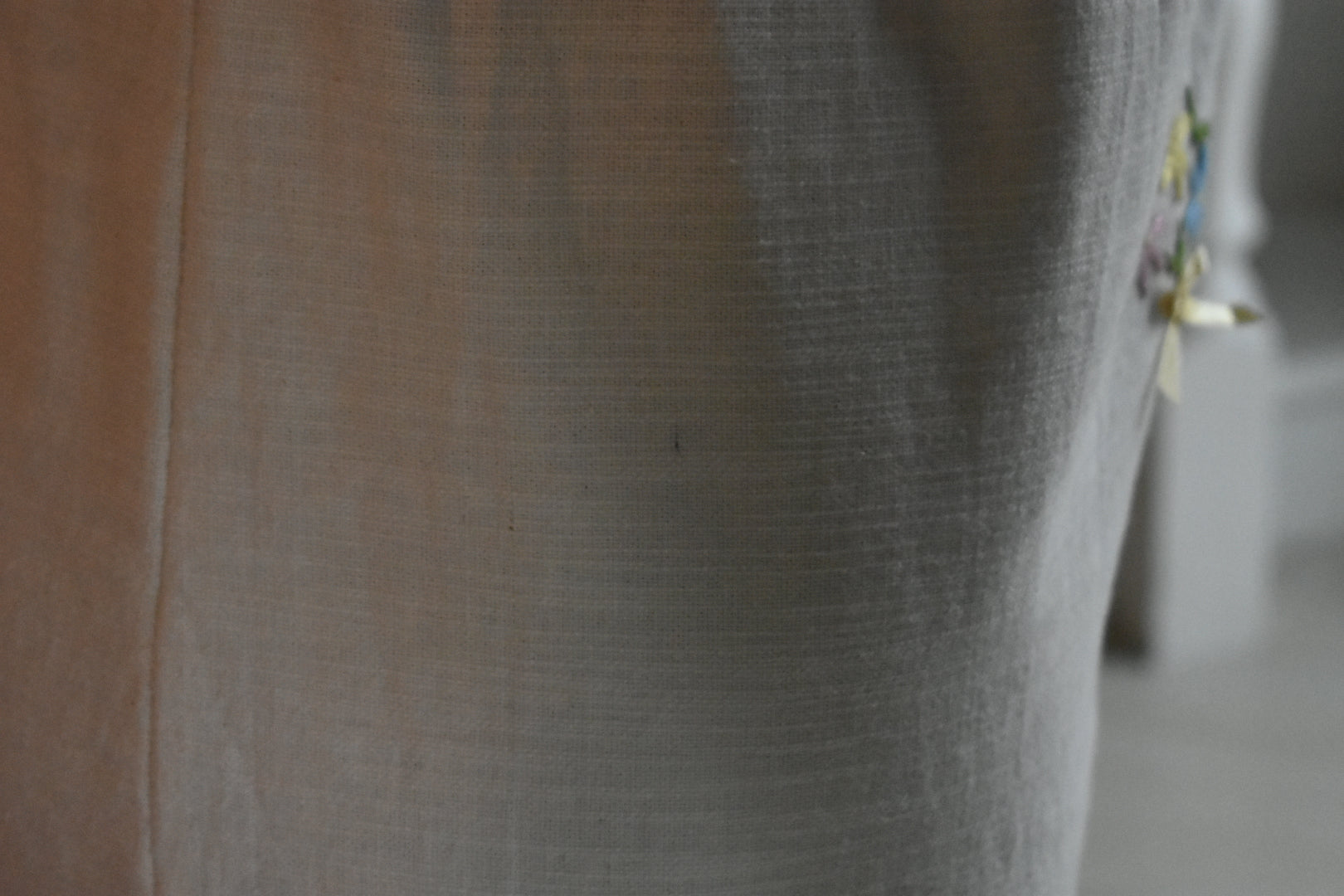 Essendo un tessuto recuperato, può presentare piccole imperfezioni naturali dovute alla sua età, come si può vedere nelle ultime due foto.