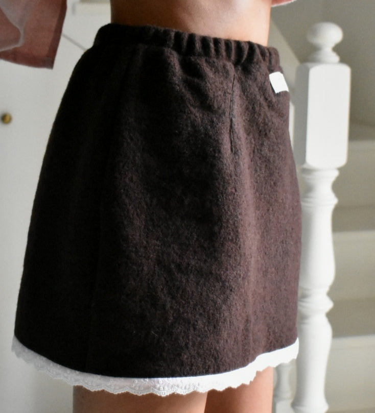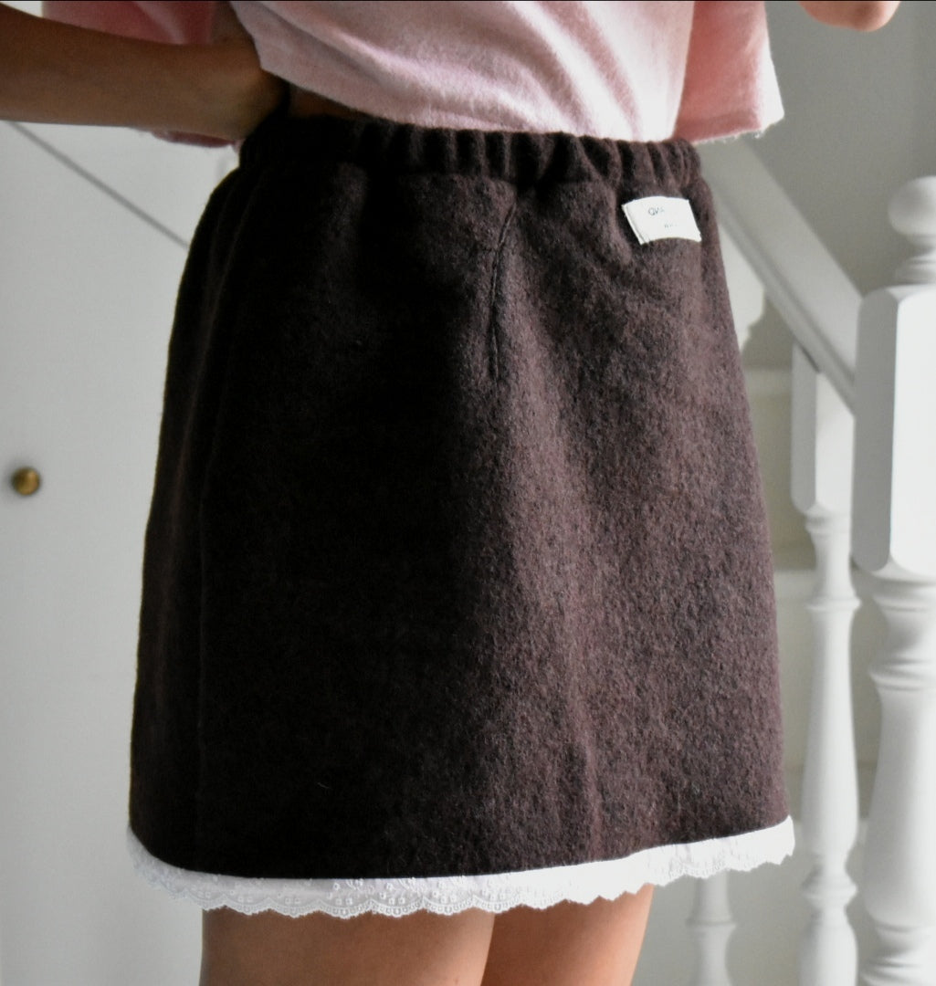Materiale: 100% lana. Bordo in pizzo di cotone.
