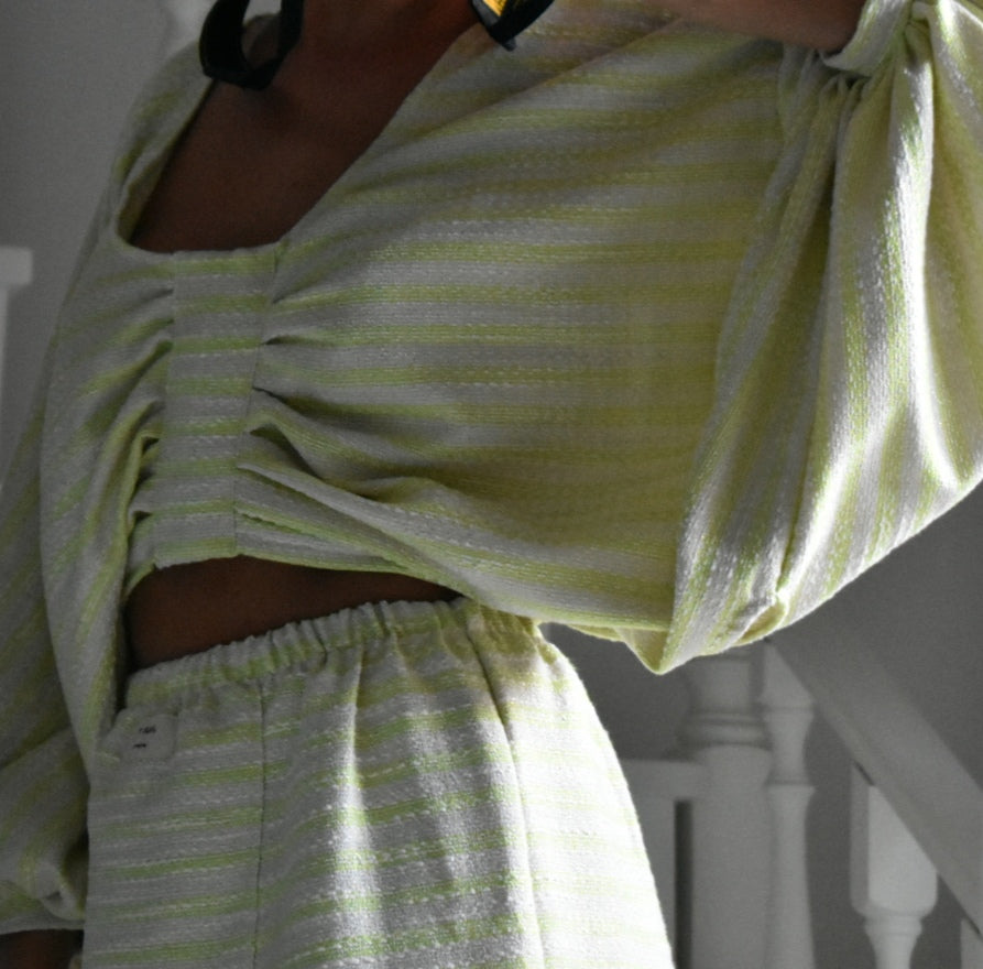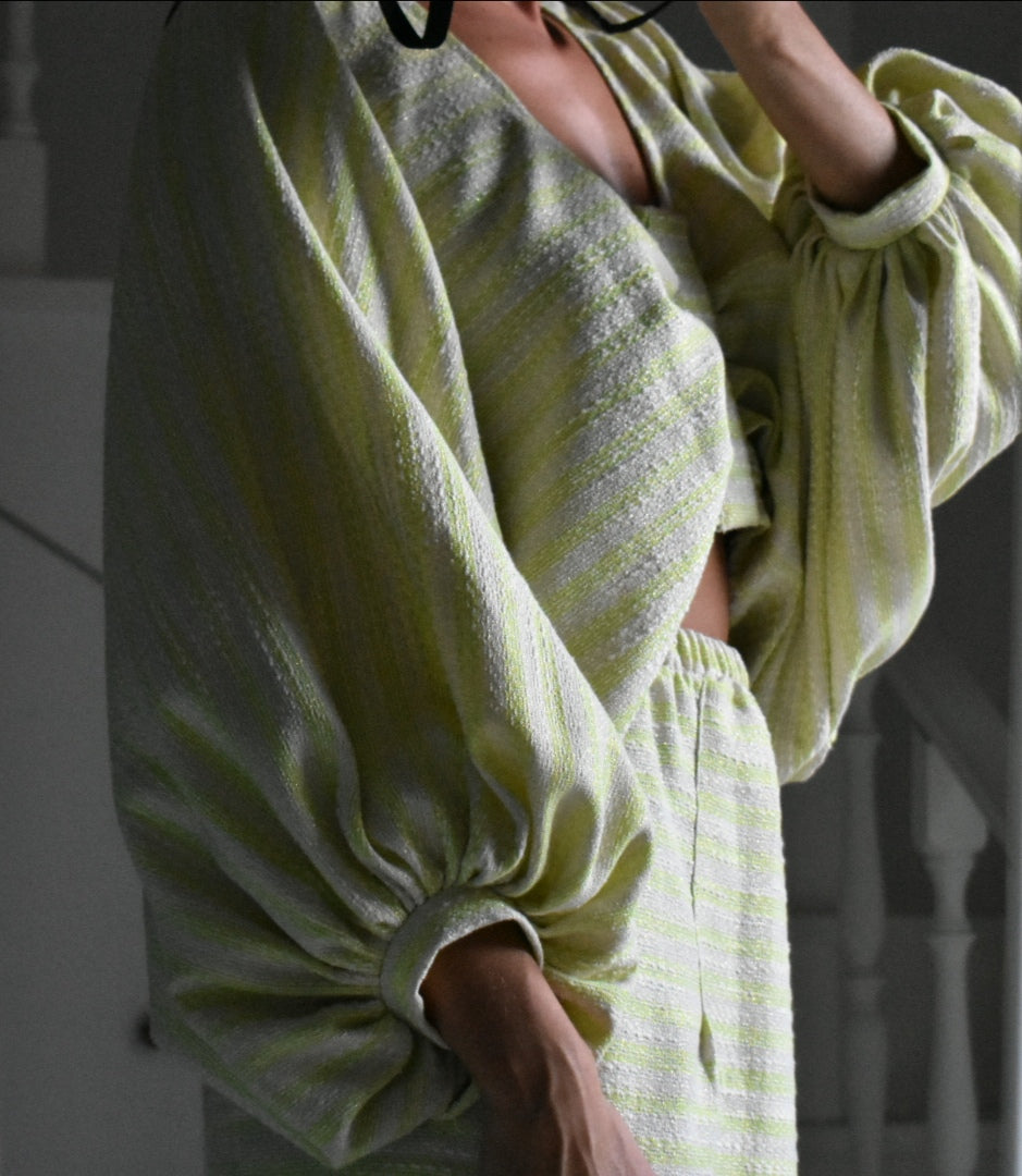 Materiale: tessuto acquistato in mercati locali, senza etichetta di composizione disponibile. Contiene lino e un po' di seta.